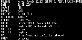 | FiLENAME: | Normal.People.S01E03.GERMAN.DL.720P.WEB.H264-WAYNE.mkv |