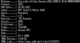 | FiLENAME: | Oma.wider.Willen.German.2012.DVDRiP.XViD-AMBASSADOR.avi |