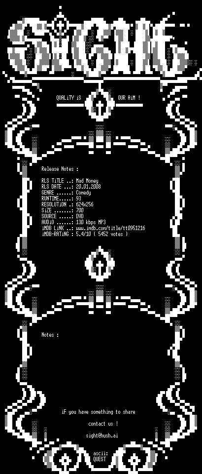 | FiLENAME: | Mad Money (2008) [GER WS DVD].avi |