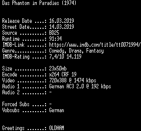 | FiLENAME: | Das.Phantom.im.Paradies.German.1974.AC3.BDRiP.x264.iNTERNAL-SPiCY.mkv |