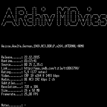| FiLENAME: | Weisse.Woelfe.German.1969.AC3.BDRiP.x264.iNTERNAL-ARMO.mkv |