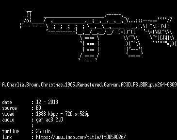 | FiLENAME: | A.Charlie.Brown.Christmas.1965.Remastered.German.AC3D.FS.BDRip.x264-GSG9.mkv |