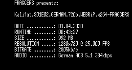 | FiLENAME: | Kalifat.S01E02.GERMAN.720p.WEBRiP.x264-FRAGGERS.mkv |
