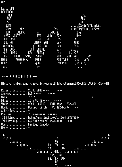 | FiLENAME: | Mister.Twister.Eine.Klasse.im.Fussballfieber.German.2016.AC3.DVDRiP.x264-KNT.mkv |