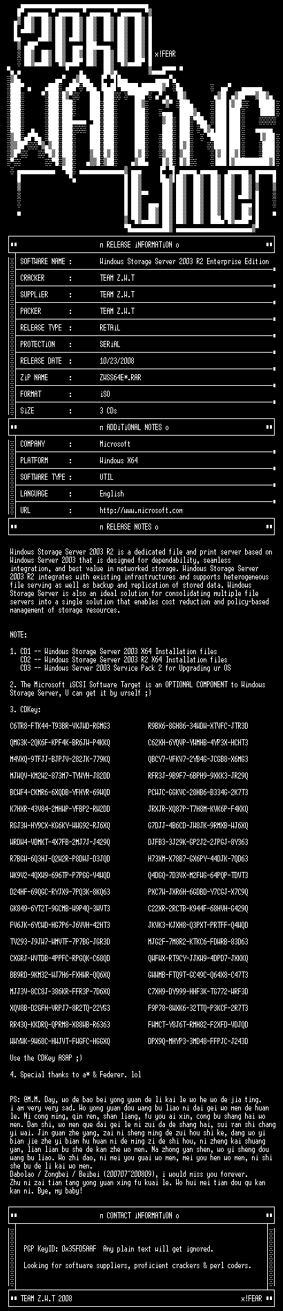 | FiLENAME: | Microsoft Windows Storage Server 2003 R2 x64 Enterprise Edition CD1-ZWTiSO.iso |