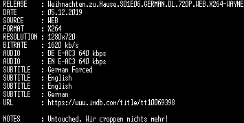 | FiLENAME: | Weihnachten.zu.Hause.S01E06.GERMAN.DL.720P.WEB.X264-WAYNE.mkv |