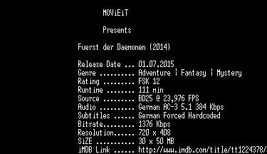 | FiLENAME: | Fuerst.der.Daemonen.GERMAN.2014.AC3.BDRip.x264-MOViEiT.mkv |