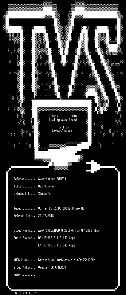 | FiLENAME: | Sweetbitter.S01E04.Bei.Simone.GERMAN.DL.1080p.WebHD.x264-TVS.mkv |