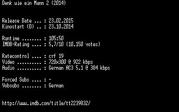| FiLENAME: | Denk.wie.ein.Mann.2.German.BDRiP.x264-EXQUiSiTE.mkv |