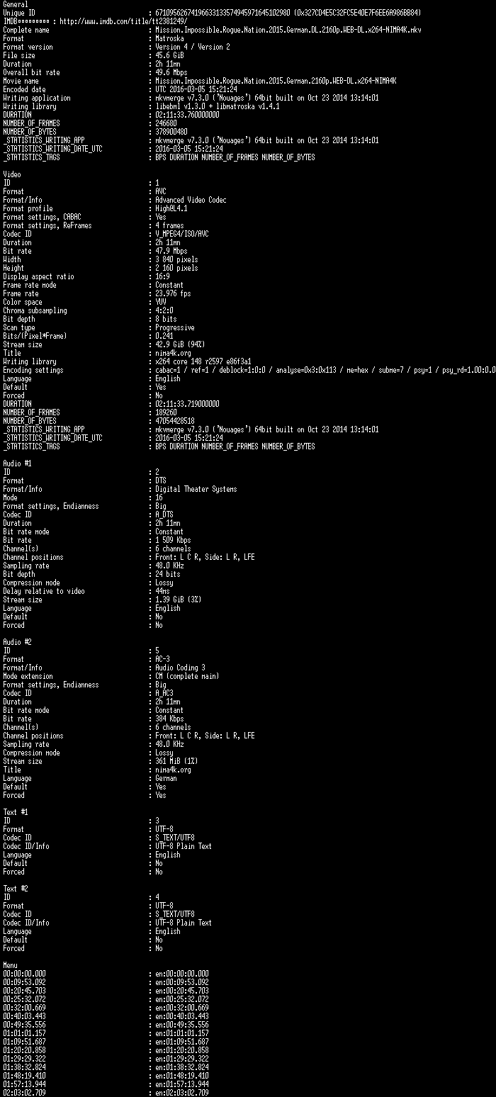 | FiLENAME: | Mission.Impossible.Rogue.Nation.2015.GERMAN.DL.2160p.WebHD.x264-NIMA4K.mkv |