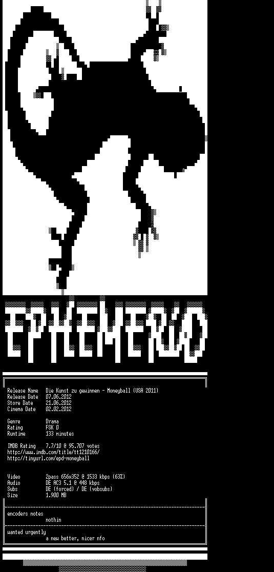 | FiLENAME: | Die.Kunst.zu.gewinnen.Moneyball.German.AC3.BDRip.XviD-EPHEMERiD.avi |