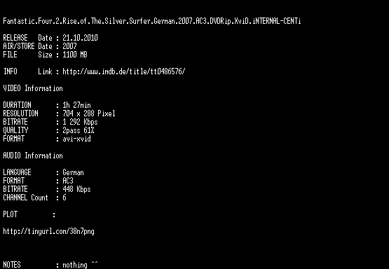 | FiLENAME: | Fantastic.Four.2.Rise.of.The.Silver.Surfer.German.2007.AC3.DVDRip.XviD.iNTERNAL-CENTi.avi |