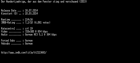 | FiLENAME: | Der.Hundertjaehrige.der.aus.dem.Fenster.stieg.und.verschwand.German.BDRiP.x264-EXQUiSiTE.mkv |
