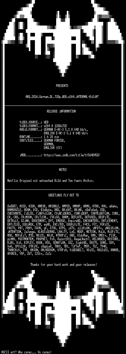 | FiLENAME: | ARQ.2016.German.DL.720p.WEB.x264.iNTERNAL-BiGiNT.mkv |