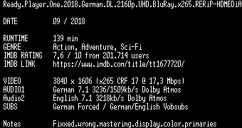 | FiLENAME: | Ready.Player.One.2018.German.DL.2160p.UHD.BluRay.x265.RERiP-HDMEDiA.mkv |