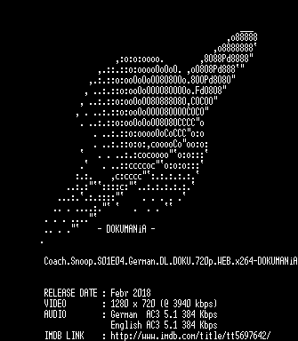 | FiLENAME: | Coach.Snoop.S01E04.German.DL.DOKU.720p.WEB.x264-DOKUMANiA.mkv |