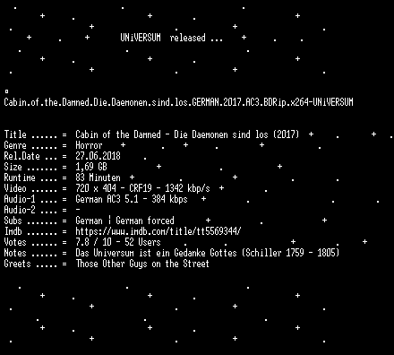 | FiLENAME: | Cabin.of.the.Damned.Die.Daemonen.sind.los.GERMAN.2017.AC3.BDRip.x264-UNiVERSUM.mkv |