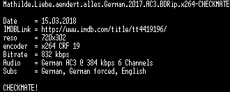 | FiLENAME: | Mathilde.Liebe.aendert.alles.German.2017.AC3.BDRip.x264-CHECKMATE.mkv |