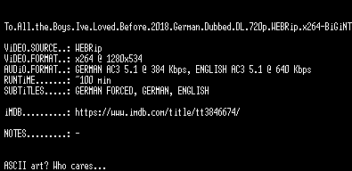 | FiLENAME: | To.All.the.Boys.Ive.Loved.Before.2018.German.Dubbed.DL.720p.WEBRip.x264-BiGiNT.mkv |