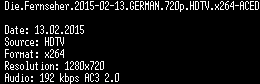 | FiLENAME: | Die.Fernseher.2015-02-13.GERMAN.720p.HDTV.x264-ACED.mkv |