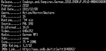 | FiLENAME: | Cowboys.and.Vampires.German.2010.DVDRiP.XViD-AMBASSADOR.avi |