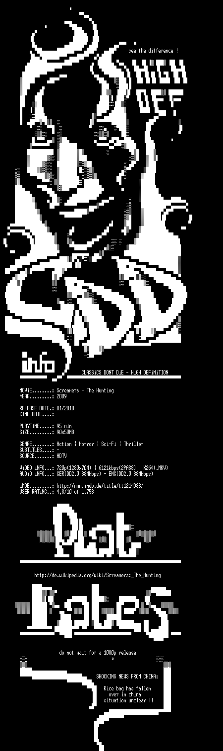 | FiLENAME: | Screamers - The Hunting (2009) [DL 720p HDTV].mkv |