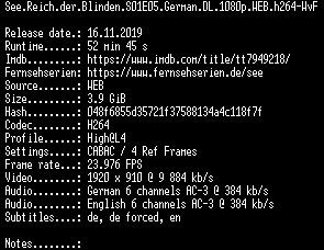 | FiLENAME: | See.Reich.der.Blinden.S01E05.German.DL.1080p.WEB.h264-WvF.mkv |