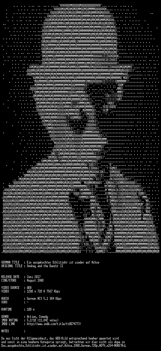 | FiLENAME: | Ein.ausgekochtes.Schlitzohr.ist.wieder.auf.Achse.1980.German.720p.WebHD.x264.READ.NFO-CLASSiCO.mkv |
