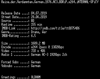| FiLENAME: | Reise.der.Verdammten.German.1976.AC3.BDRiP.x264.iNTERNAL-SPiCY.mkv |