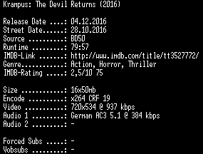 | FiLENAME: | Krampus.The.Christmas.Devil.Returns.German.2016.AC3.BDRip.x264-SPiCY.mkv |