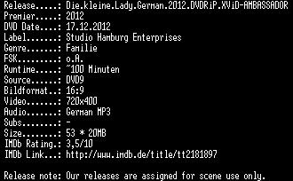 | FiLENAME: | Die.kleine.Lady.German.2012.DVDRiP.XViD-AMBASSADOR.avi |