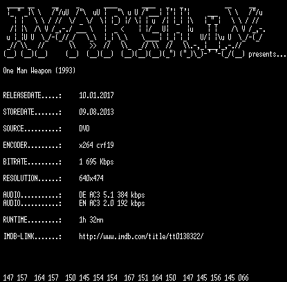 | FiLENAME: | One.Man.Weapon.1993.German.DL.DVDRip.x264-TVARCHiV.mkv |