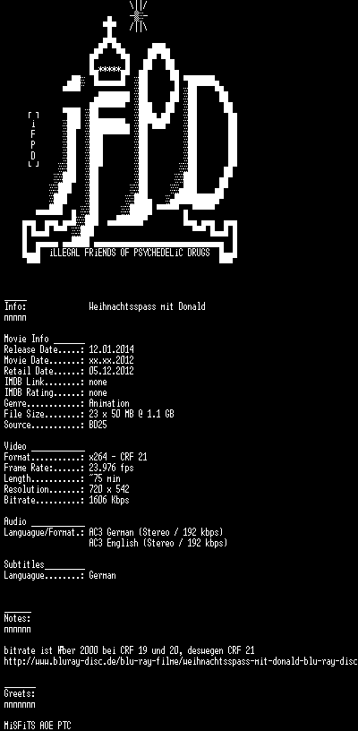 | FiLENAME: | Weihnachtsspass.mit.Donald.German.2012.DL.BDRiP.x264-iFPD.mkv |