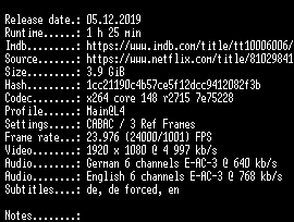 | FiLENAME: | A.Christmas.Prince.The.Royal.Baby.2019.German.DL.1080p.WEB.x264-WvF.mkv |