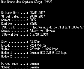 | FiLENAME: | Die.Bande.des.Captain.Clegg.German.REMASTERED.1962.AC3.BDRip.x264-SPiCY.mkv |