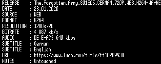 | FiLENAME: | The.Forgotten.Army.S01E05.GERMAN.720P.WEB.H264-WAYNE.mkv |