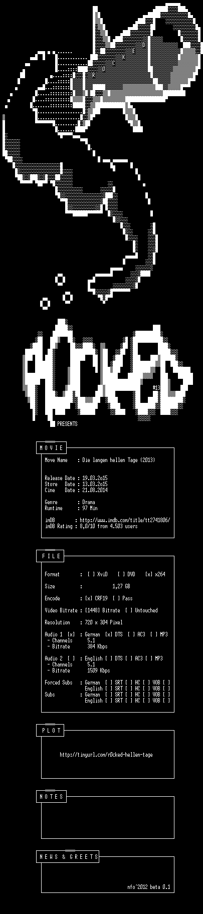 | FiLENAME: | Die.langen.hellen.Tage.German.2013.DVDRiP.x264-R0CKED.mkv |