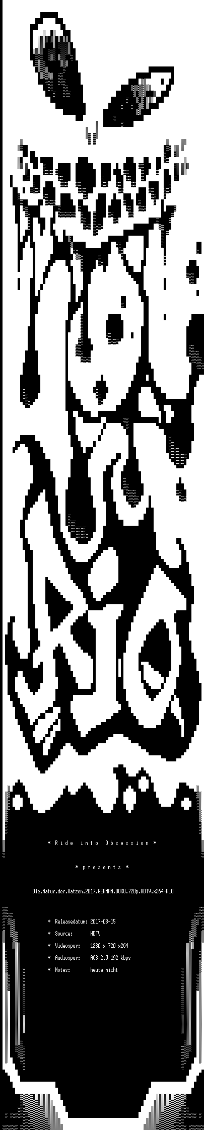 | FiLENAME: | Die.Natur.der.Katzen.2017.GERMAN.DOKU.720p.HDTV.x264-RiO.mkv |