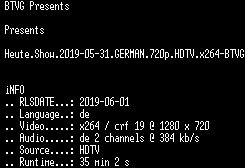 | FiLENAME: | Heute.Show.2019-05-31.GERMAN.720p.HDTV.x264-BTVG.mkv |