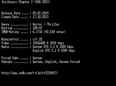 | FiLENAME: | Insidious.Chapter.2.German.DL.1080p.BluRay.x264-EXQUiSiTE.mkv |