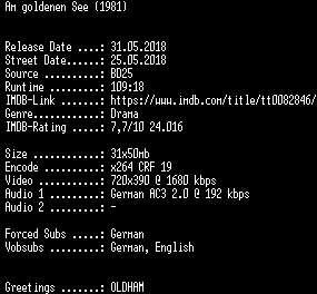 | FiLENAME: | Am.goldenen.See.German.REMASTERED.1981.AC3.BDRip.x264-SPiCY.mkv |