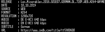 | FiLENAME: | Les.Miserables.2018.S01E07.GERMAN.DL.720P.WEB.H264-WAYNE.mkv |
