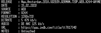 | FiLENAME: | New.Amsterdam.2018.S02E09.GERMAN.720P.WEB.X264-WAYNE.mkv |
