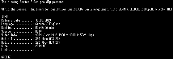 | FiLENAME: | Strip.the.Cosmos.-.Im.Innersten.des.Universums.S03E09.Der.Zwergplanet.Pluto.GERMAN.DL.DOKU.1080p.HDTV.x264-TMSF.mkv |