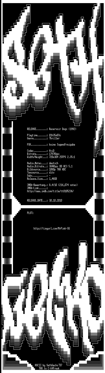 | FiLENAME: | Reservoir Dogs (1992) [GER-AC3 WS BD].avi |