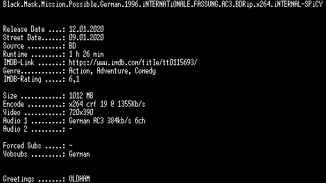 | FiLENAME: | Black.Mask.Mission.Possible.German.1996.iNTERNATiONALE.FASSUNG.AC3.BDRip.x264.iNTERNAL-SPiCY.mkv |