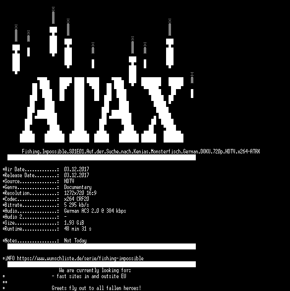| FiLENAME: | Fishing.Impossible.S01E01.Auf.der.Suche.nach.Kenias.Monsterfisch.German.DOKU.720p.HDTV.x264-ATAX.mkv |