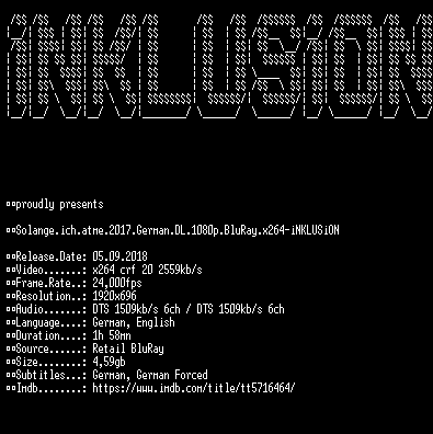 | FiLENAME: | Solange.ich.atme.2017.German.DL.1080p.BluRay.x264-iNKLUSiON.mkv |