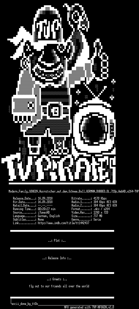 | FiLENAME: | Modern.Family.S08E09.Ausrutscher.auf.dem.Schnee.Ball.GERMAN.DUBBED.DL.720p.WebHD.x264-TVP.mkv |