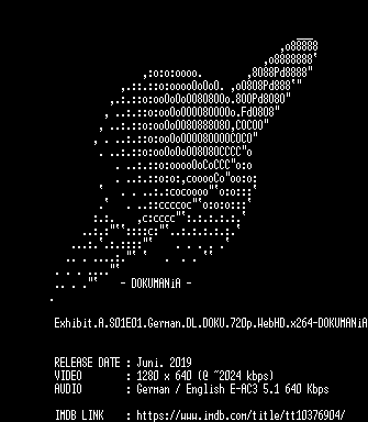 | FiLENAME: | Exhibit.A.S01E01.German.DL.DOKU.720p.WebHD.x264-DOKUMANiA.mkv |